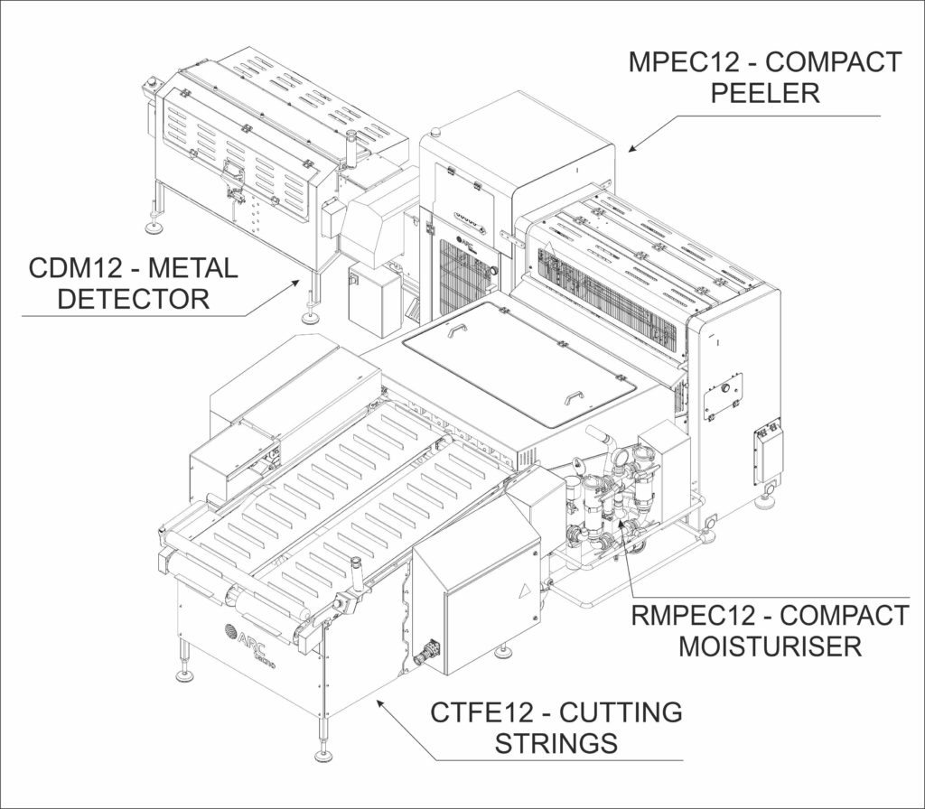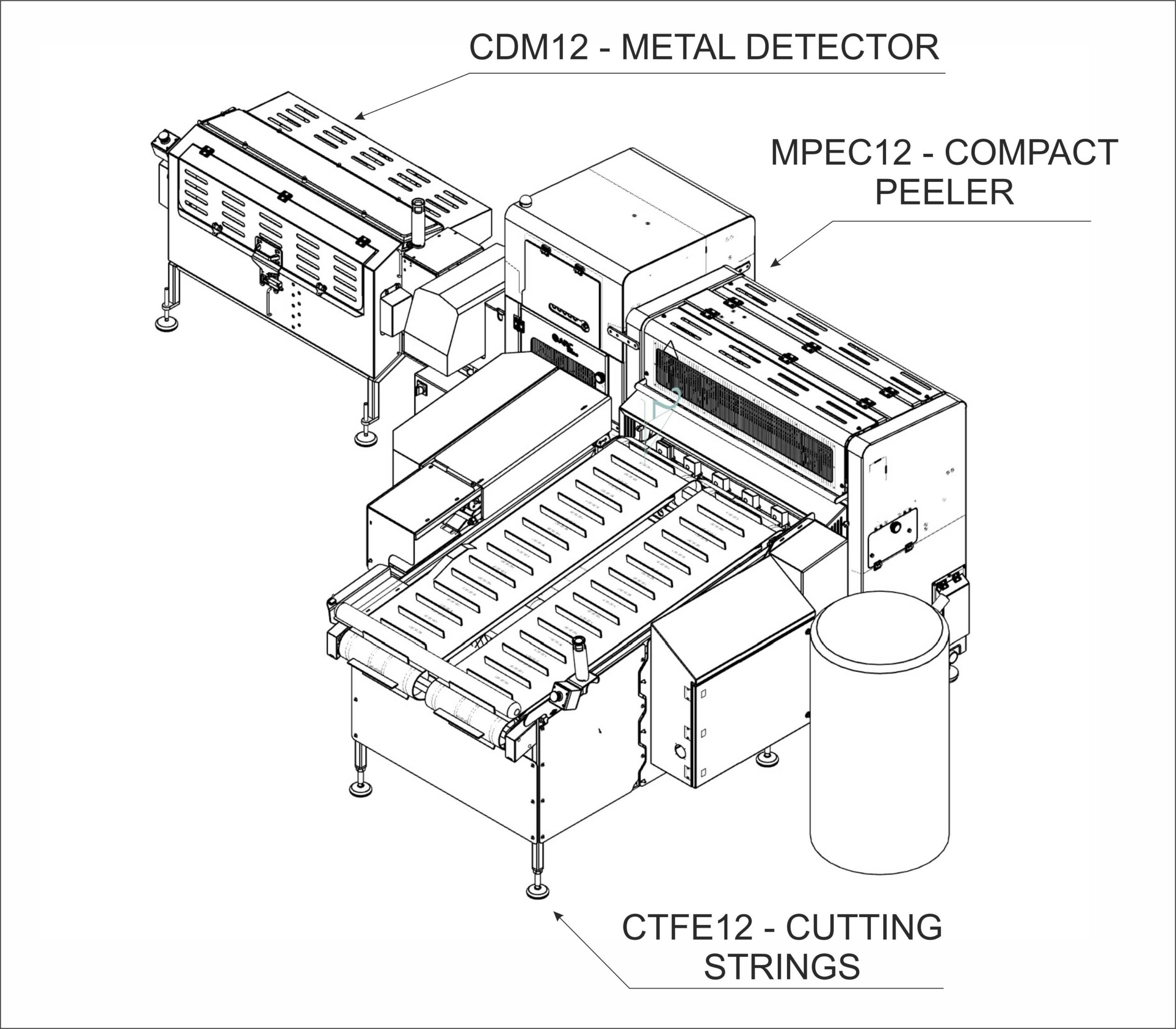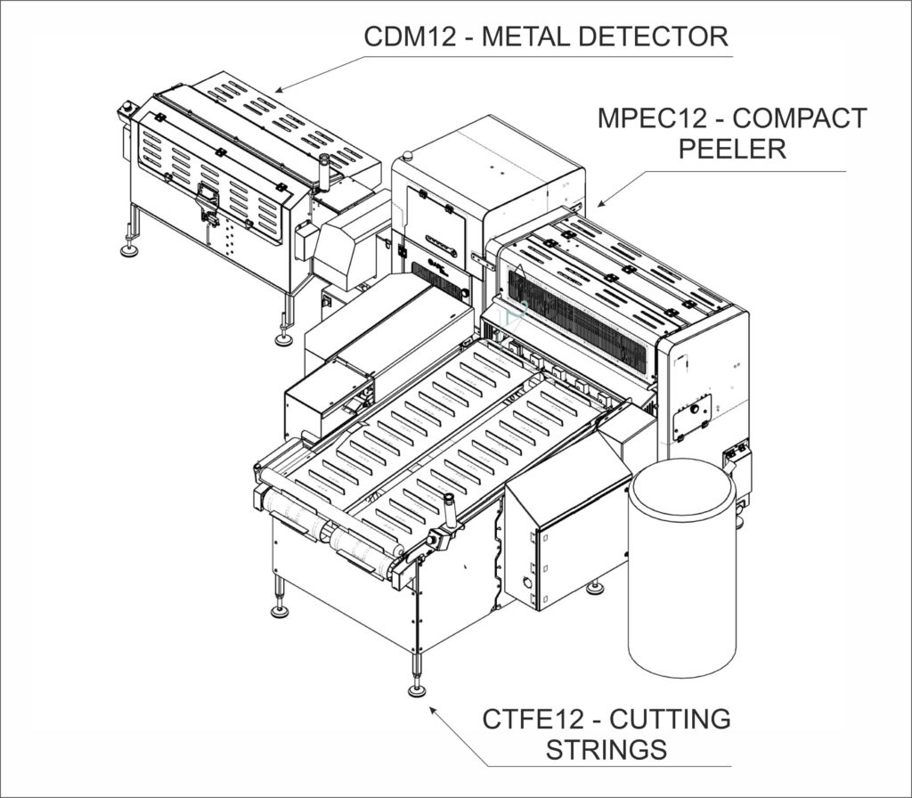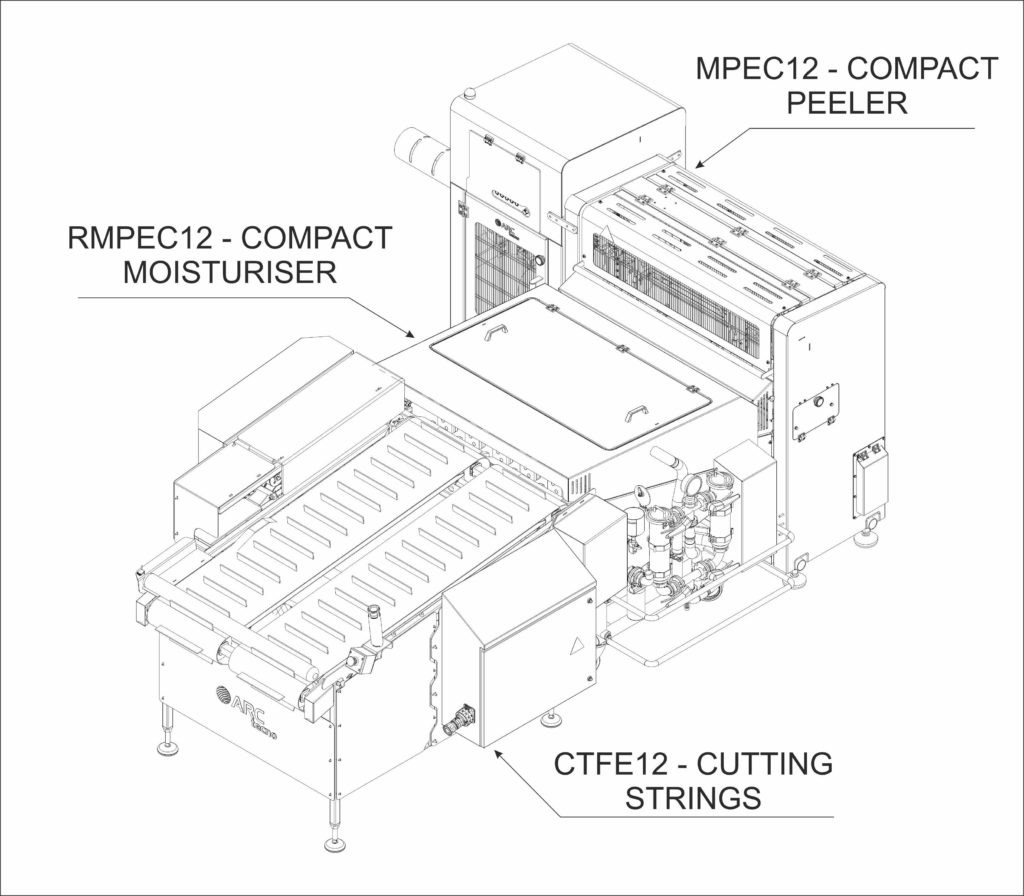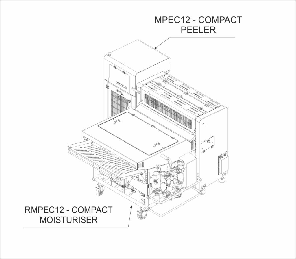 The Compact Machine can also work without a hydrator unit if your product do not require hydration before being peeled.